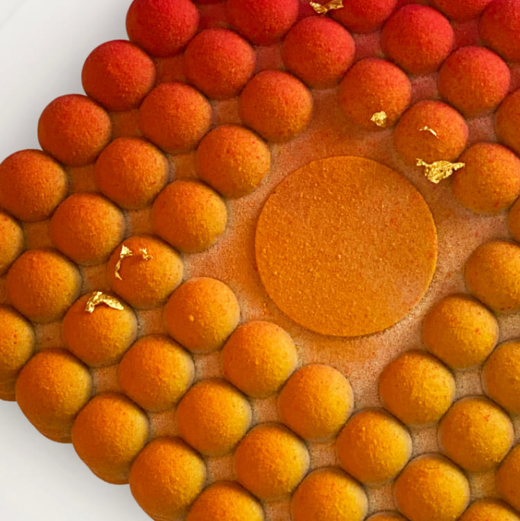 Iniciar pedidoDisponible en acabado brillante, se utiliza glaseado de diversos colores para crear patrones sobre el entremet.